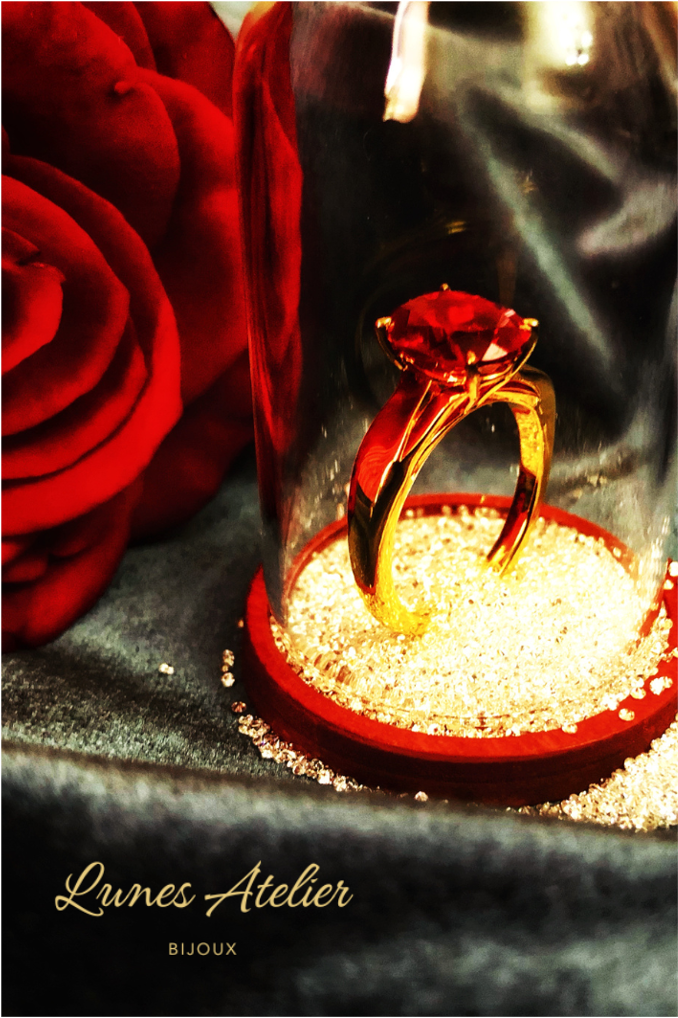 Lunes Atelier Ruby Series - 10×8mm Lab-Grown Ruby Ring (24k Plated Silver)